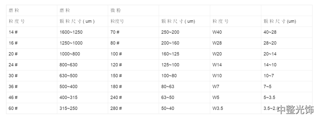 粒度是指磨料顆粒的尺寸,其大小用粒度號表示。國標規定了磨料和微粉兩種粒度號。